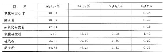 采用氧化铝空心球、电熔刚玉粉、α-Al2O3微粉、SiO2微粉、硅线石以及粘土粉为原料制备具有抗剥落性能的氧化铝空心球砖。原料成分见表1。