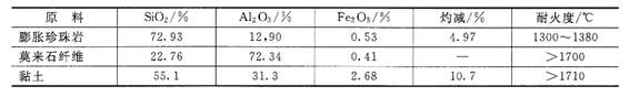 采用聚苯乙烯泡沫球、膨胀珍珠岩粉、莫来石纤维、粘土、硅溶胶作为原料,经过挤压成型制备出的轻质保温隔热砖。原料成分见表2。