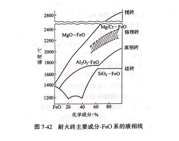 首先,炉顶耐火材料从石英耐火砖到高氧化铝耐火砖进而到不烧铬镁耐火砖,又向直接结合的铬镁耐火砖变化,图7-42可以说明这方面的情况。电炉炉顶的碱性化在耐火材料的耐侵蚀性方面如上所述,随着其碱性化的变化带来不少问题。其重要的有以下几个问题: